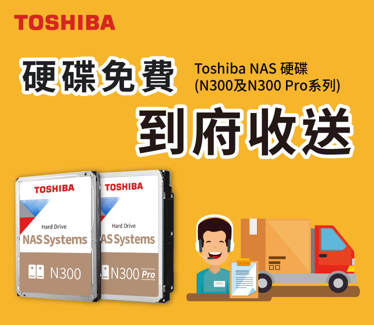 即日起,富基電通提供Toshiba NAS (N300系列) 硬碟免費到府收送服務,讓您不用出門即可輕鬆換貨。