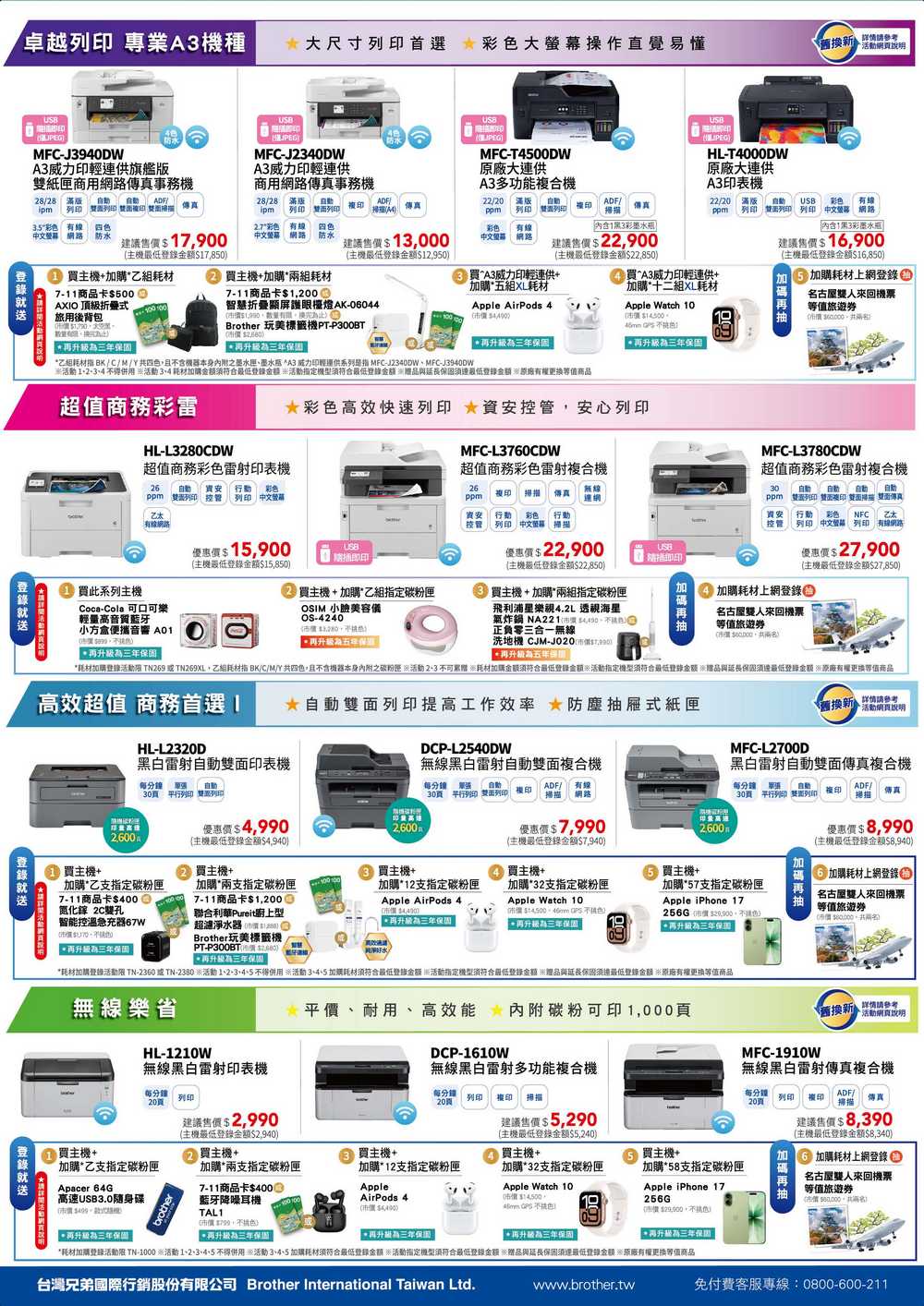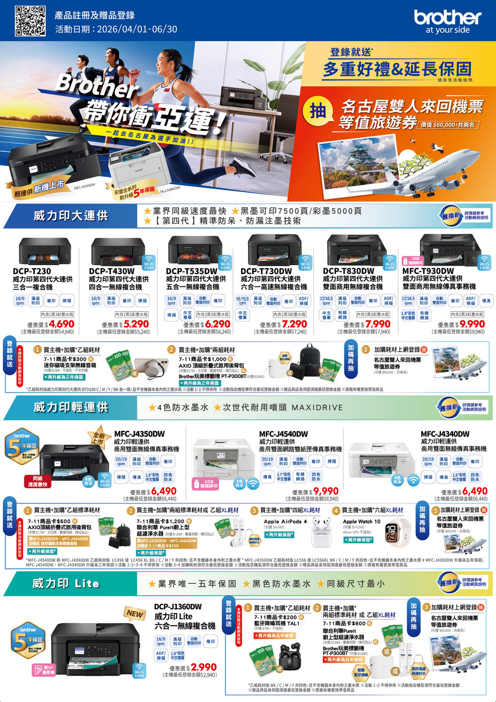 Brother 2026/04/01-2026/06/30 帶你衝亞運,登錄送多重好禮+延長保固