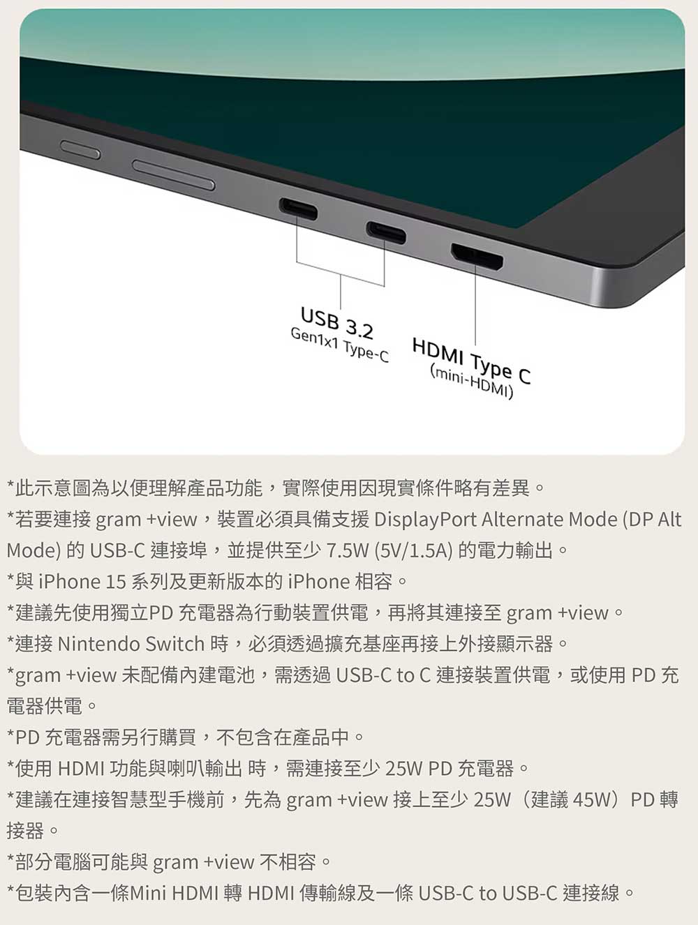 • 2 個 USB Type-C (PD 45W),mini-HDMI