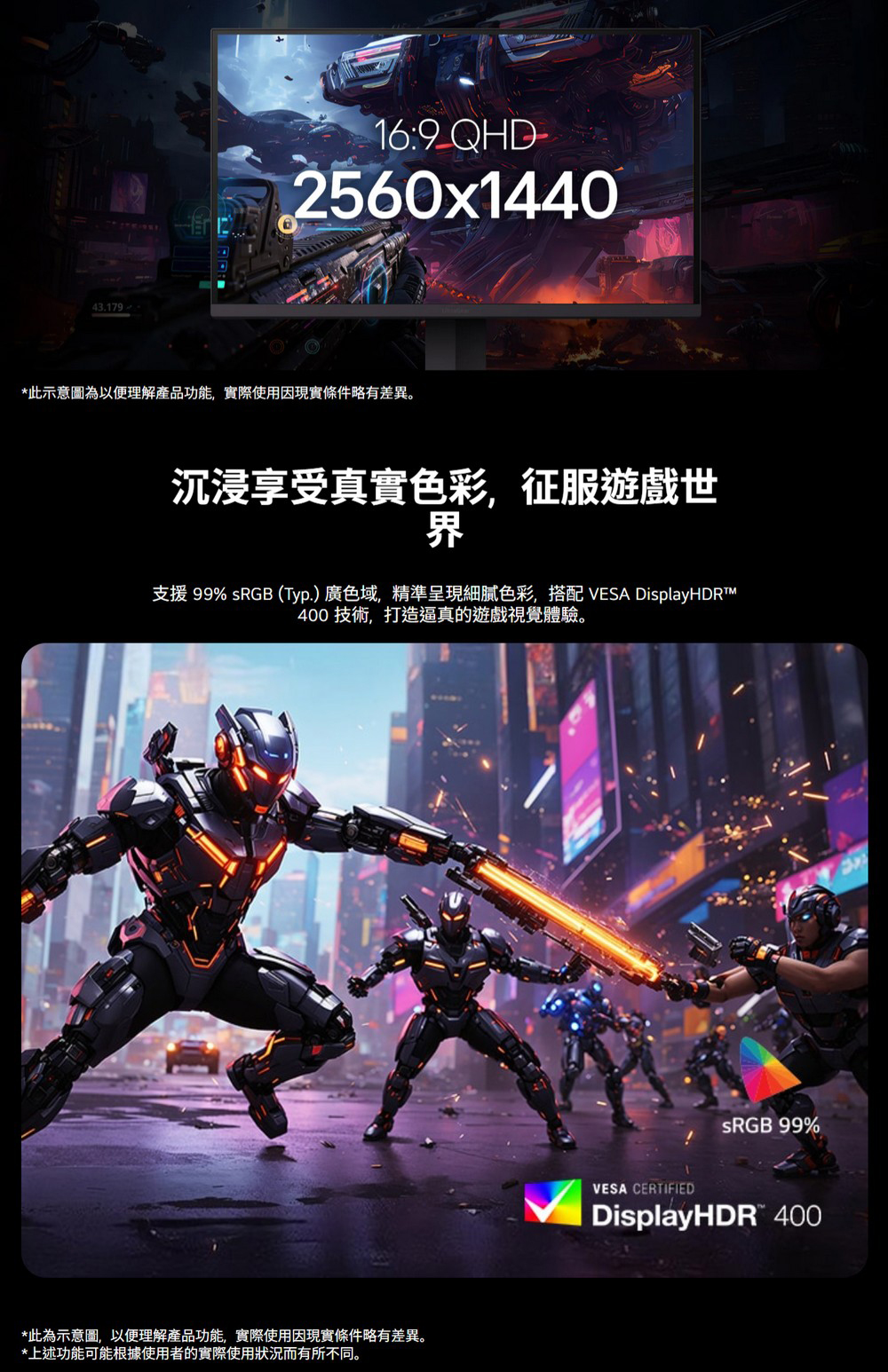 • 27 吋QHD (2560x1440) 專業電競螢幕
