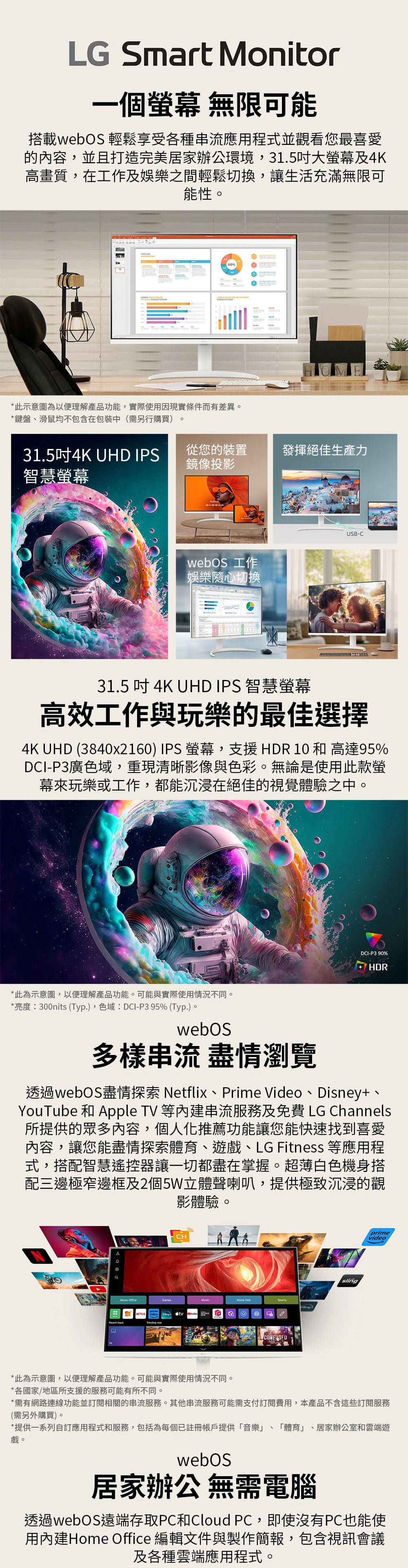 31.5" Smart Monitor 4K UHD IPS 高畫質智慧螢幕