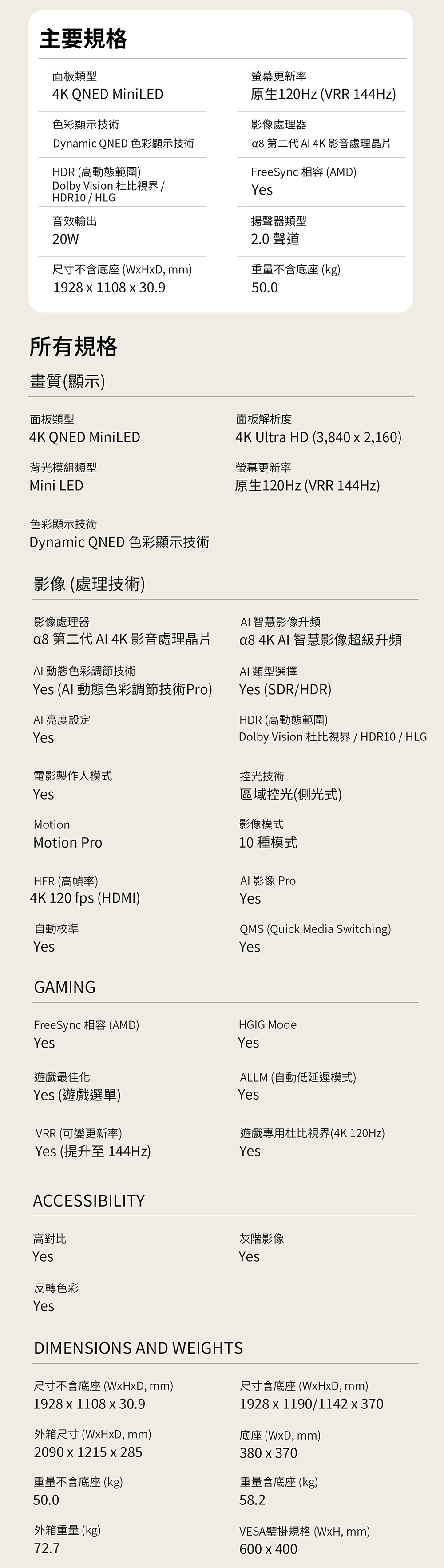 86QNED86ATA 86 吋|LG QNED evo AI 4K miniLED 智慧顯示器|86系列 全新動態 QNED Color | 提供更豐富飽滿的色彩表現 alpha 8 第二代 AI 4K 影音處理晶片 | 呈現更清晰的畫質及音效,將觀影體驗提升至全新境界 區域控光技術 | 畫面色彩準確、減少光暈,呈現最細膩的細節 超纖薄設計完美融入您的居家空間 全新AI智慧滑鼠遙控器 | 透過AI 搜尋、聲紋辨識、語音控制更便利 webOS 5年升級保證 | 持續升級人性化操作 看更多 顏色 規格 86型 Download File