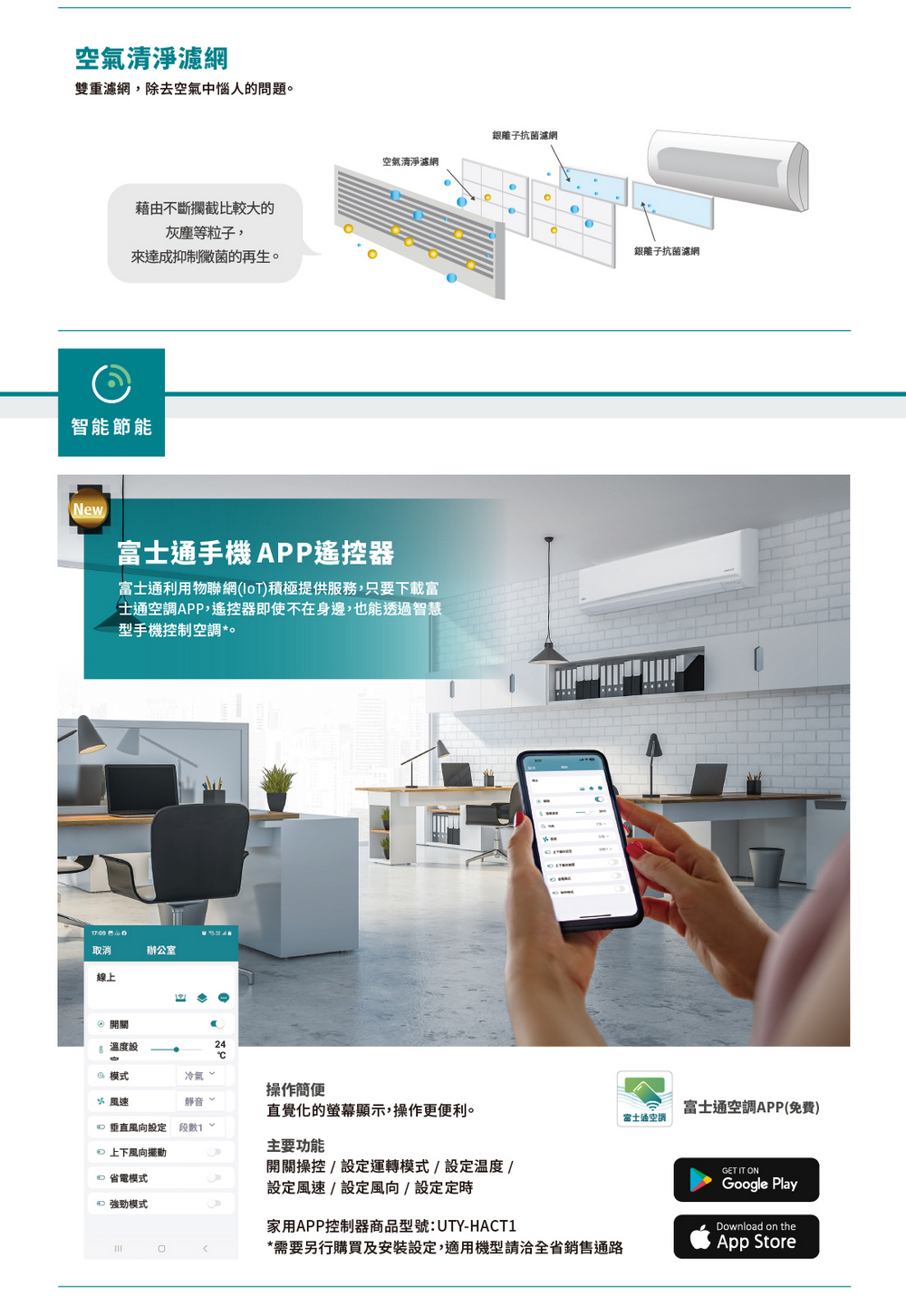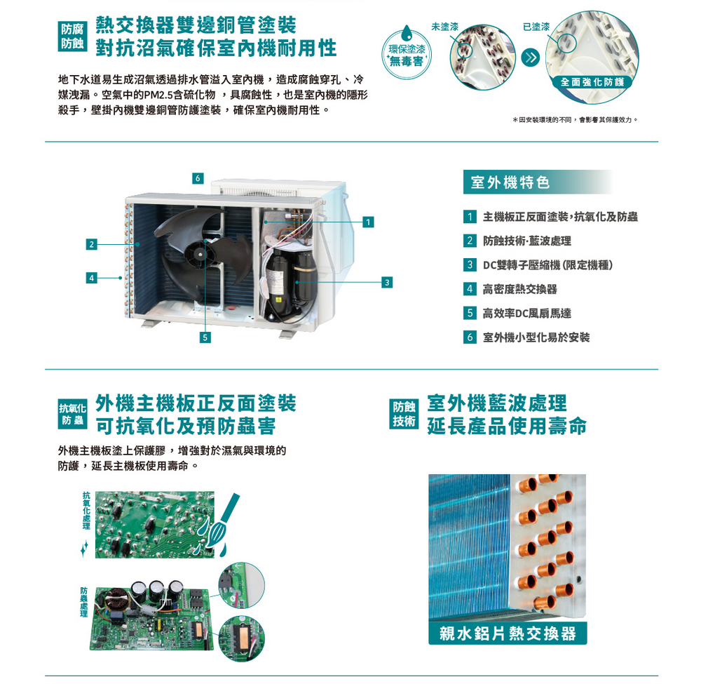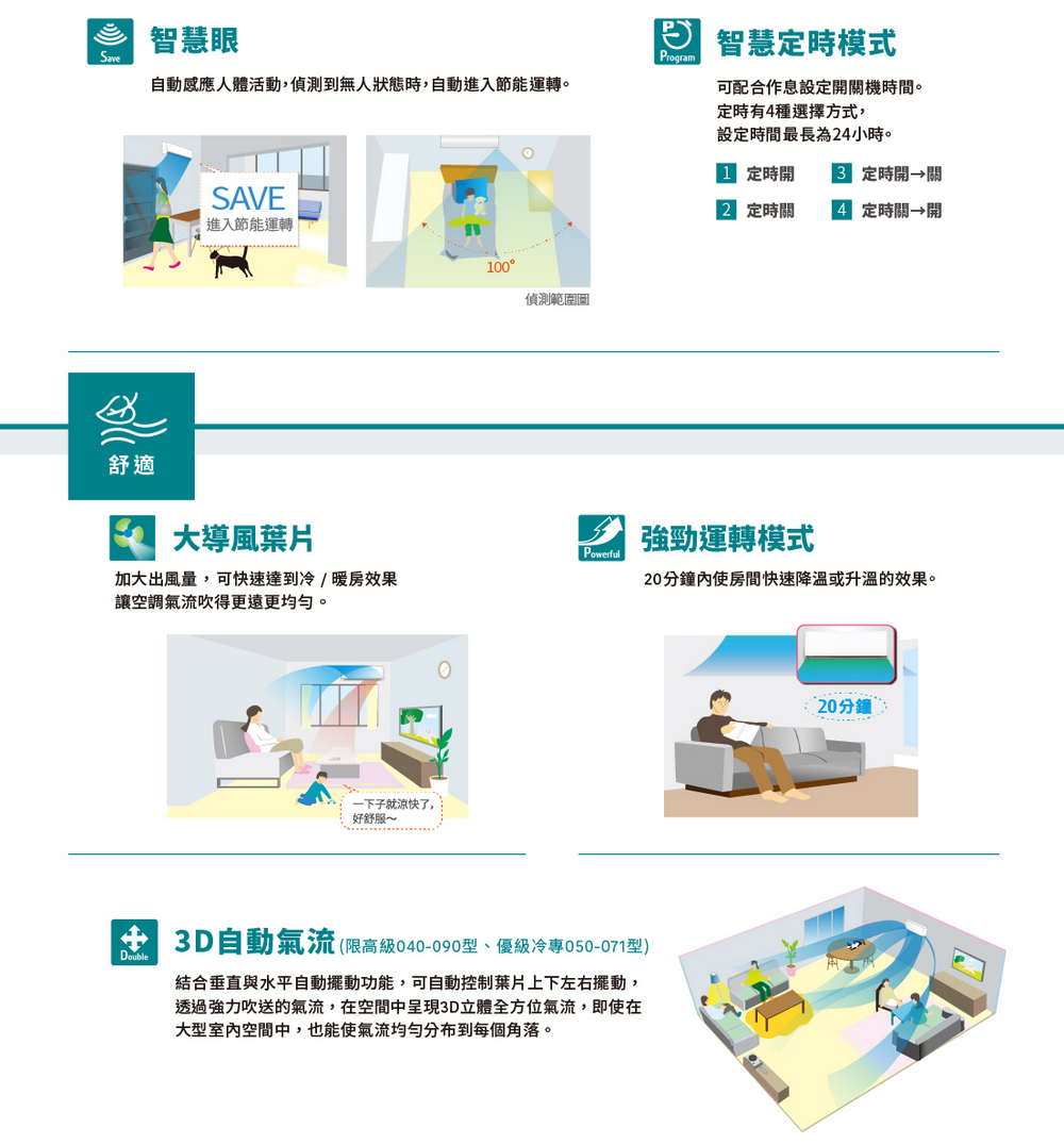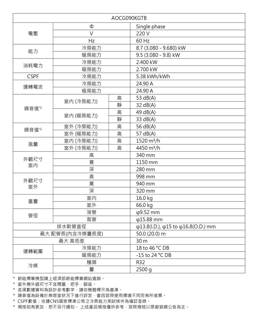 AOCG090KGTB 高級系列 冷暖型 熱交換器雙邊銅管塗裝 主機板防護塗裝 室外機藍波處理 0.5°C控溫 智慧眼 強勁運轉模式 省電運轉模式 智慧定時模式/睡眠定時模式 銀離子抗菌濾網 一對四遙控器 外機靜音 家用APP控制器 看更多 顏色 規格 冷房8.7kw Download File