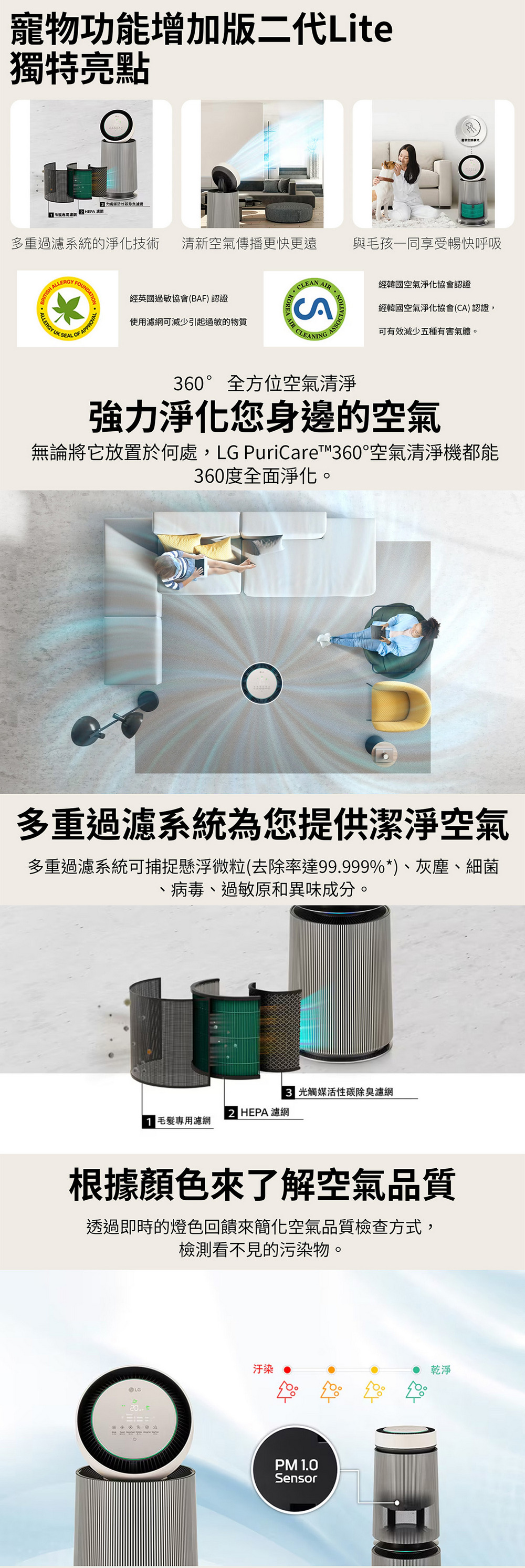 AS101DWT0 PuriCare™ 360°空氣清淨機 - 寵物功能增加版二代 - LITE 版/建議適用30坪(雙層) CASR值:12.34 360°強力淨化 多重過濾系統 獨特清淨循環扇 寵物模式增強吸力 看更多 顏色 規格 AS101DWT0 Download File