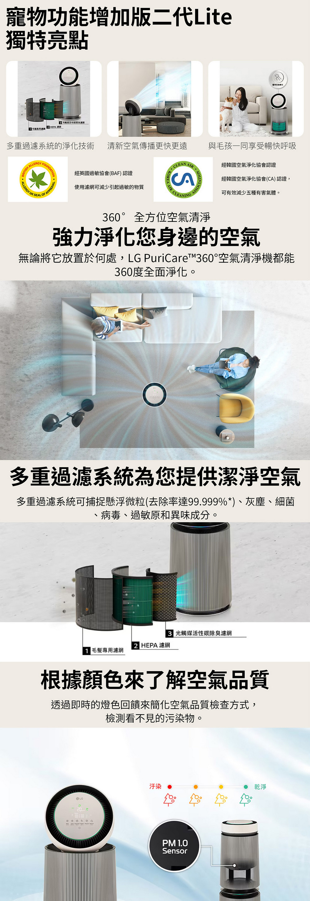 AS651DWT0 PuriCare™ 360°空氣清淨機 - 寵物功能增加版二代 - LITE 版/建議適用19坪(單層) CASR值:8.11 360°強力淨化 多重過濾系統 獨特清淨循環扇 寵物模式增強吸力 看更多 顏色 規格 AS651DWT0 Download File