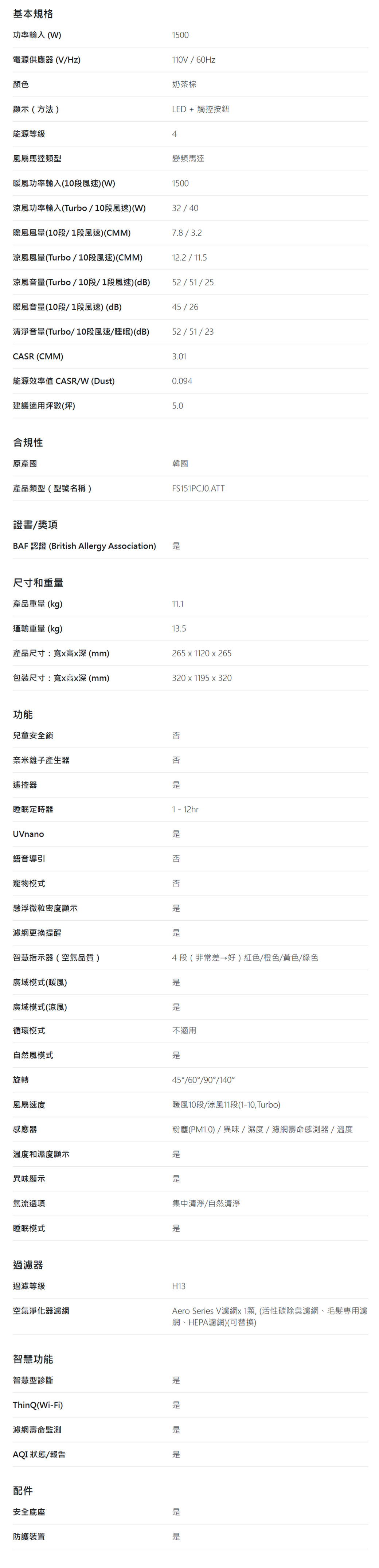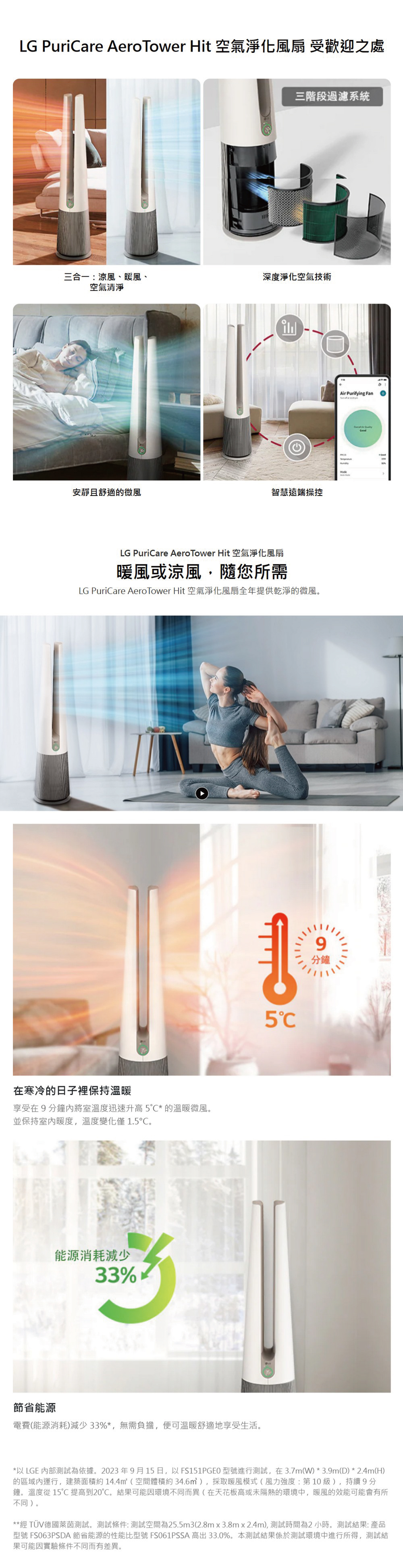 FS151PCJ0 PuriCare™ AeroTower Hit 風革機-三合一涼暖系列清淨機 (經典版) (奶茶棕) 暖風模式 - 啟動後可穩定吹出溫暖氣流 強大的空氣清淨功能 - HEPA 濾網、UVnano™技術、PM1.0感應器 安靜舒適 - 極致靜音、兩種氣流運作模式 LG ThinQ™ - 操作簡單方便 看更多 顏色 規格 FS151PCJ0 Download File