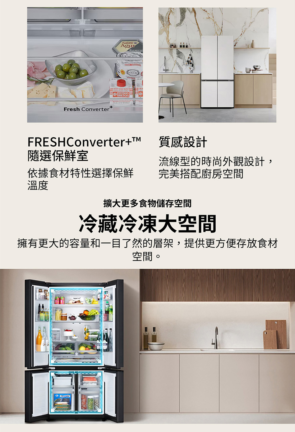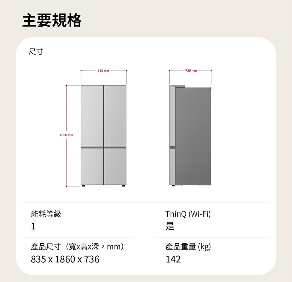 GV-NB61WG 619公升 智慧變頻四門冰箱|雲朵白 冷凍176/冷藏443公升 LinearCooling™ 智慧變頻科技 精準溫控,延長7天保鮮 DoorCooling+™四方吹冷流⁺™,邊門冷流零死角,維持雞蛋牛奶新鮮 FRESHConverter™隨選變溫保鮮室,食材保鮮最佳化 自動製冰器,24HR取用冰塊 看更多 顏色 規格 GV-NB61WG Download File