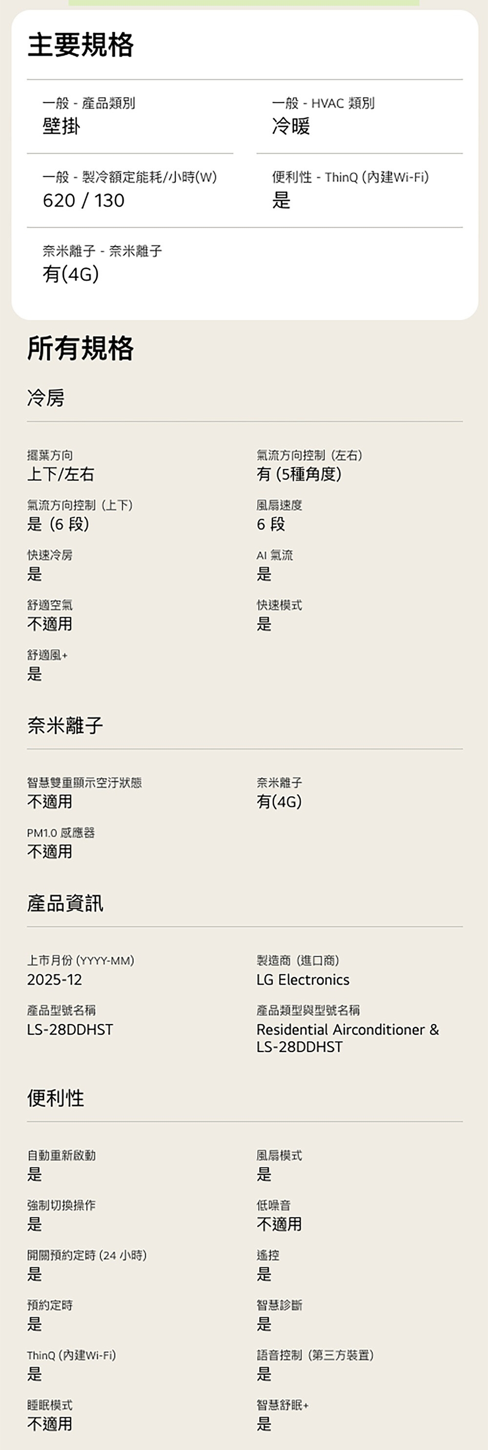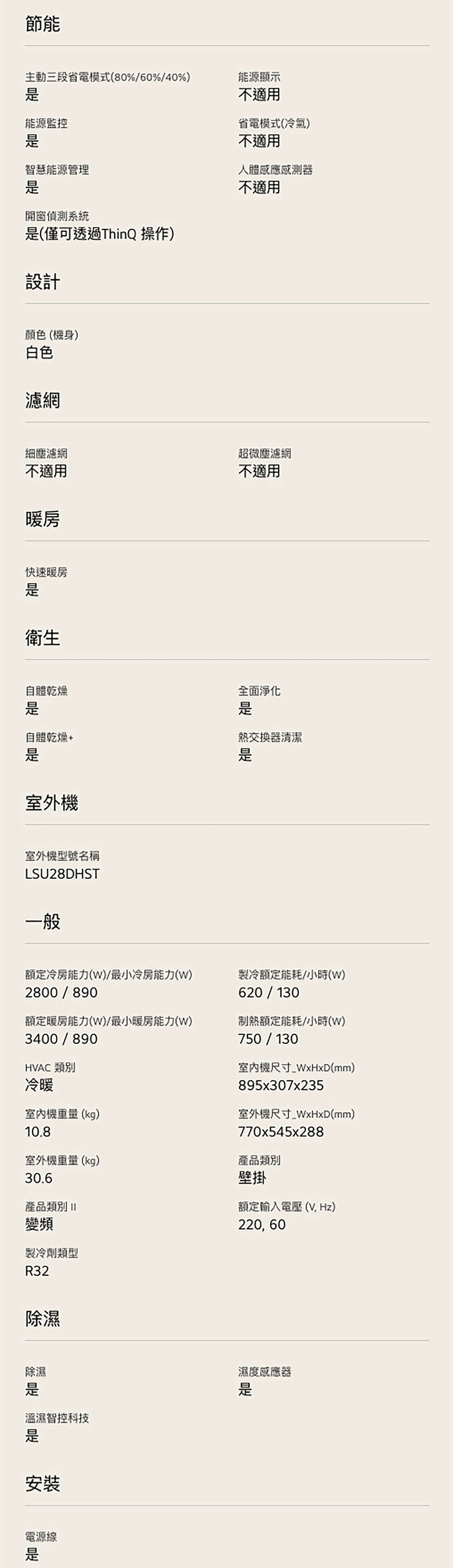 LS-28DDHST 建議3-5坪|WiFi 雙迴轉變頻空調|極淨2.0系列|AI 氣流 & 奈米離子 內建 WiFi 模組,無需加購 AI 氣流,一鍵舒適 AI 凍潔淨化,一鍵淨化 舒適風+,提供輕柔間接風 智慧電量管理,自主掌握能源使用 奈米離子抑菌 看更多 顏色 規格 LSN28DHST/LSU28DDHST Download File