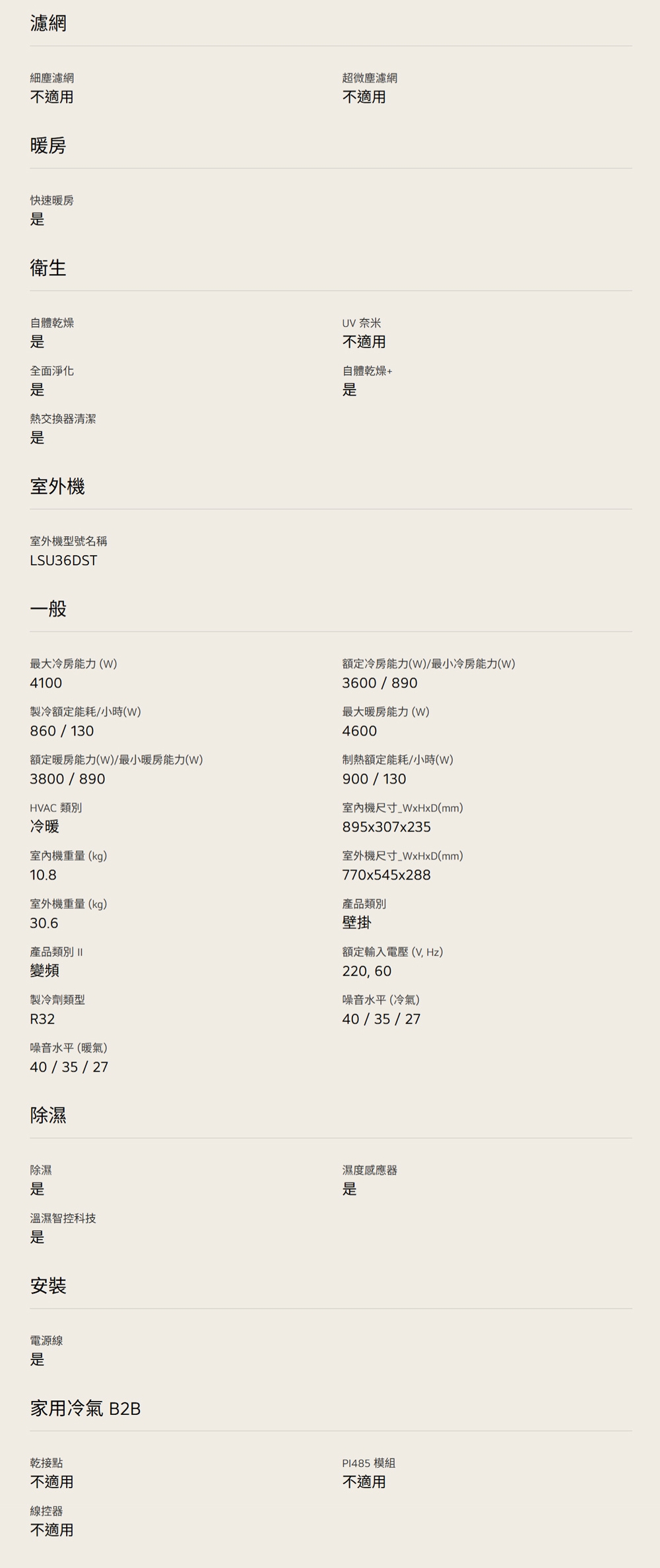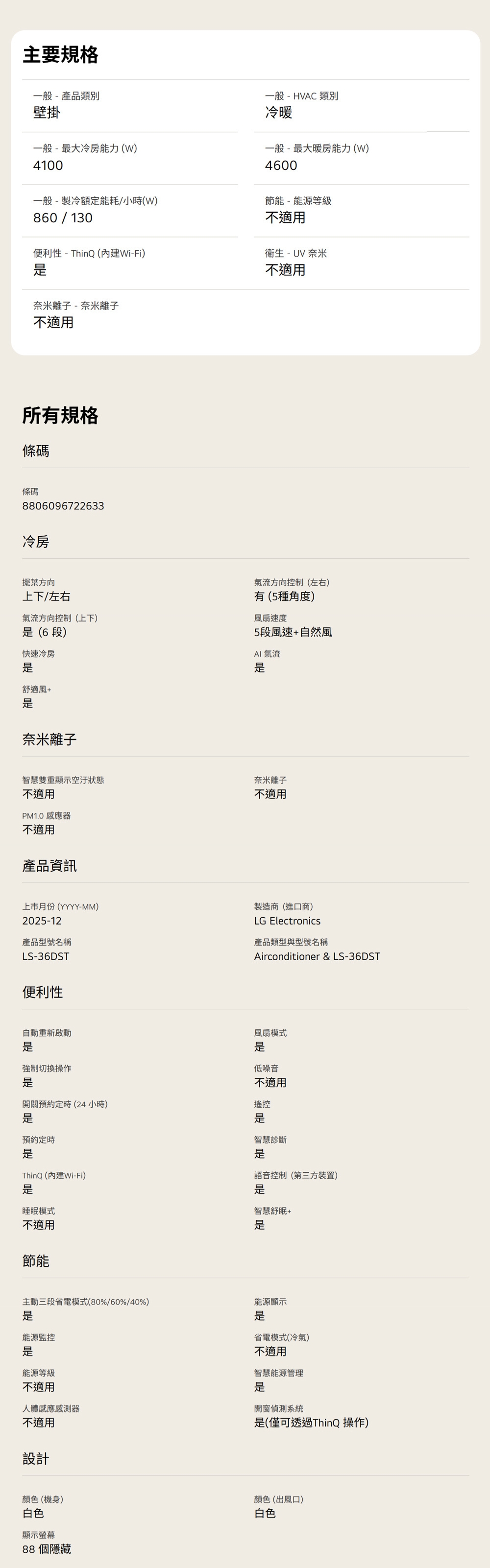 LS-36DST 建議4-6坪|WiFi 雙迴轉變頻空調|極效2.0系列|AI 氣流 & 內建 WiFi 內建 WiFi 模組,無需加購 雙迴轉變頻壓縮機 抗鏽蝕金散熱片 舒適風+,提供輕柔間接風 AI 氣流,一鍵舒適 三段省電模式(40%.60%.80%) 看更多 顏色 規格 LSN36DST/LSU36DST Download File
