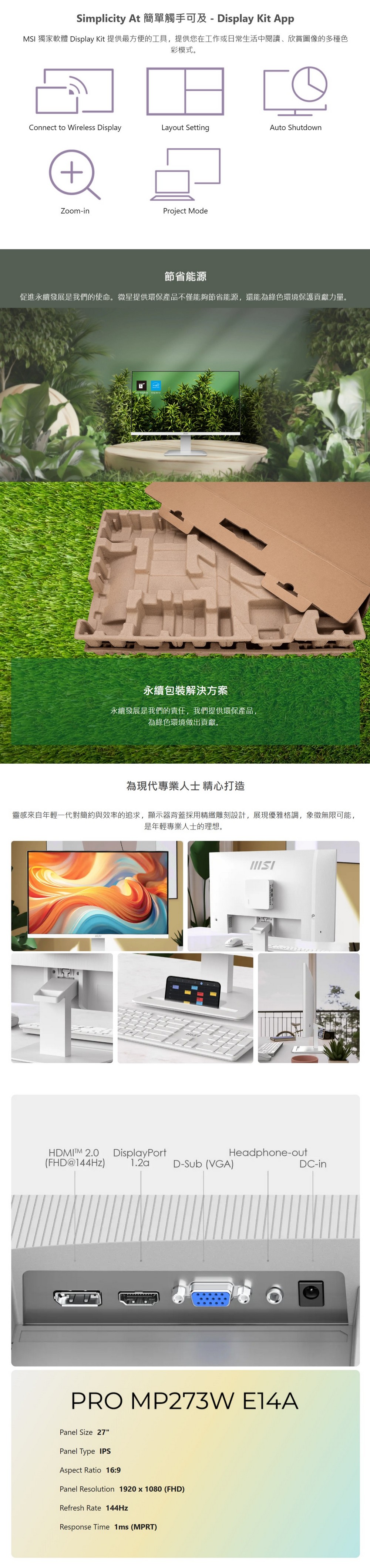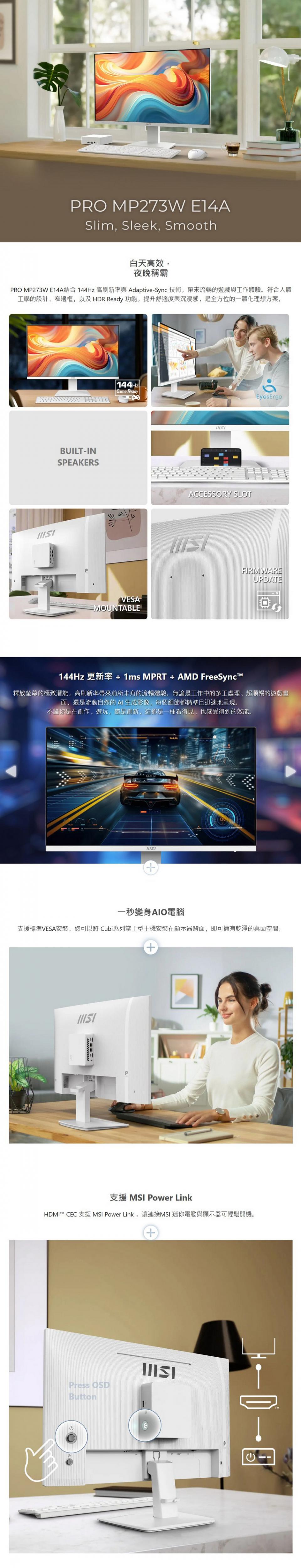 Support: HDMI™ CEC (MSI Power Link), FW Update ; Non Support: PIP/PBP, KVM