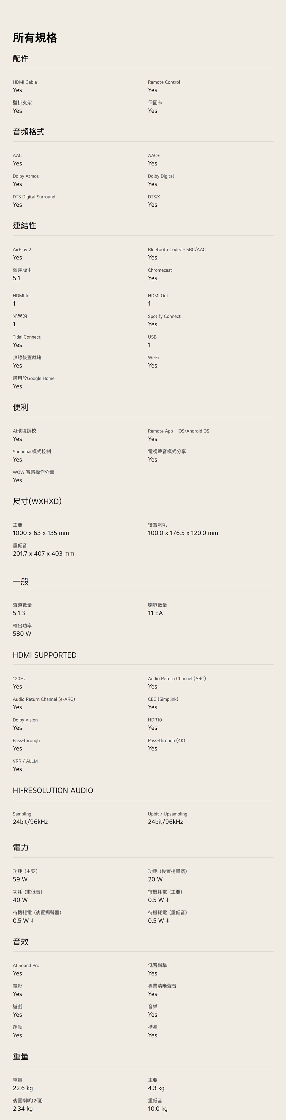 - 支援 WOWCAST 高品質無線傳輸,線材減少裝潢更俐落