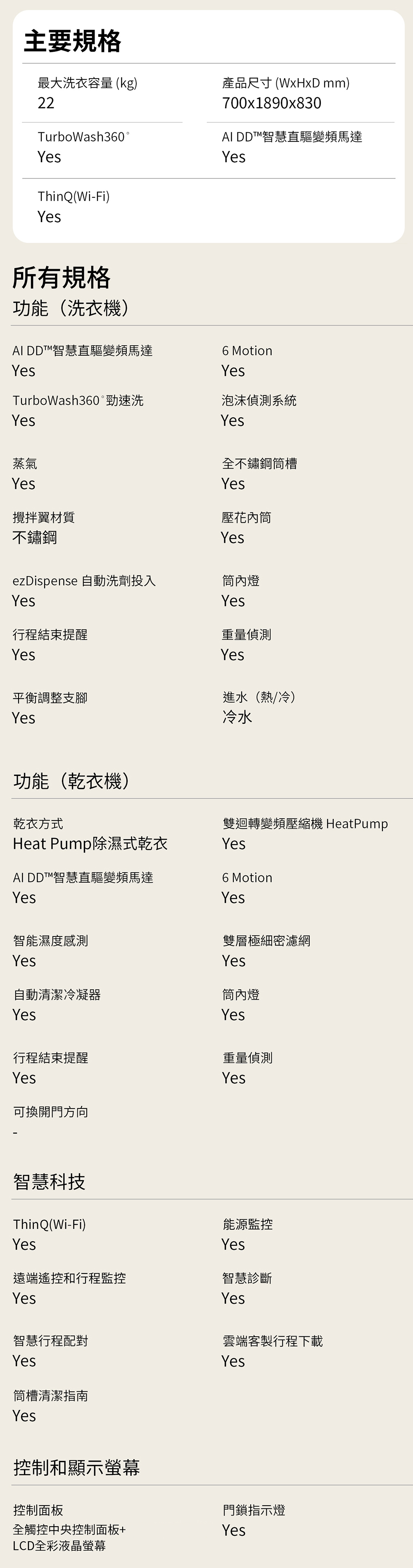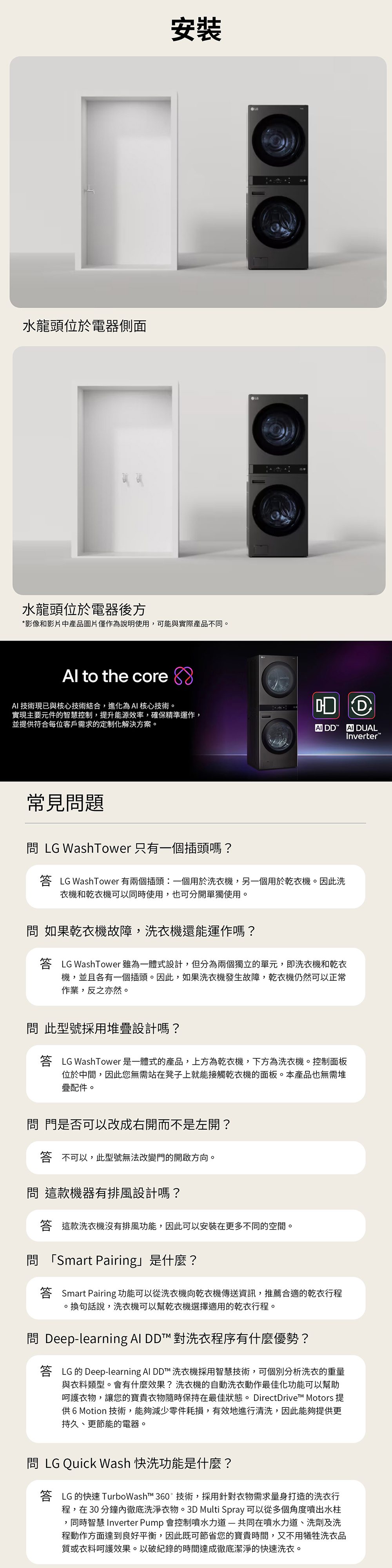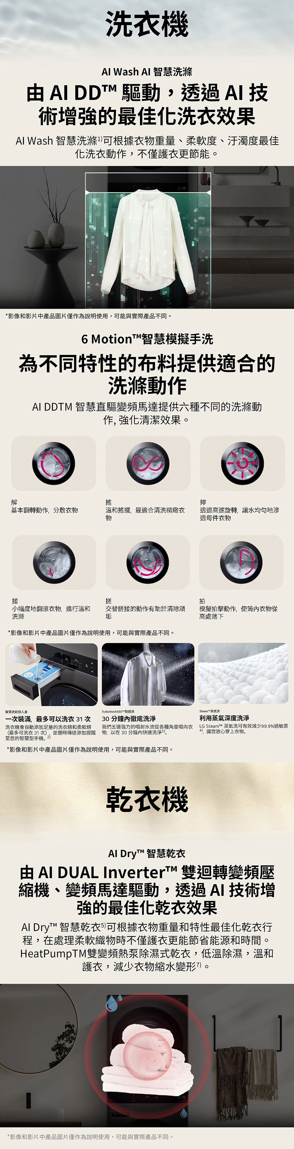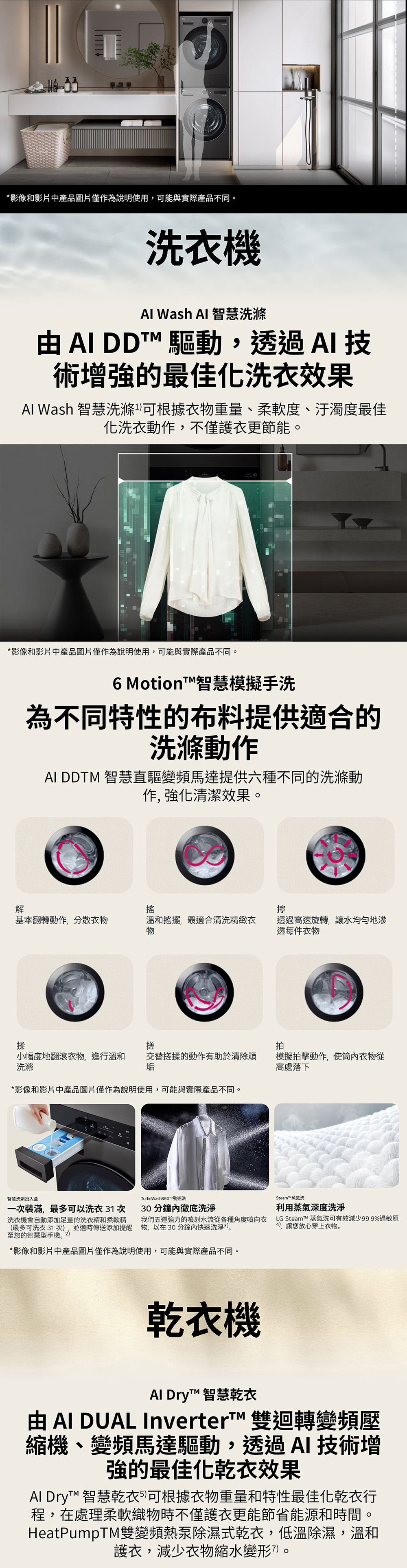 • 洗乾全 AI,AI DD 智慧洗滌+AI Dry 智慧乾衣