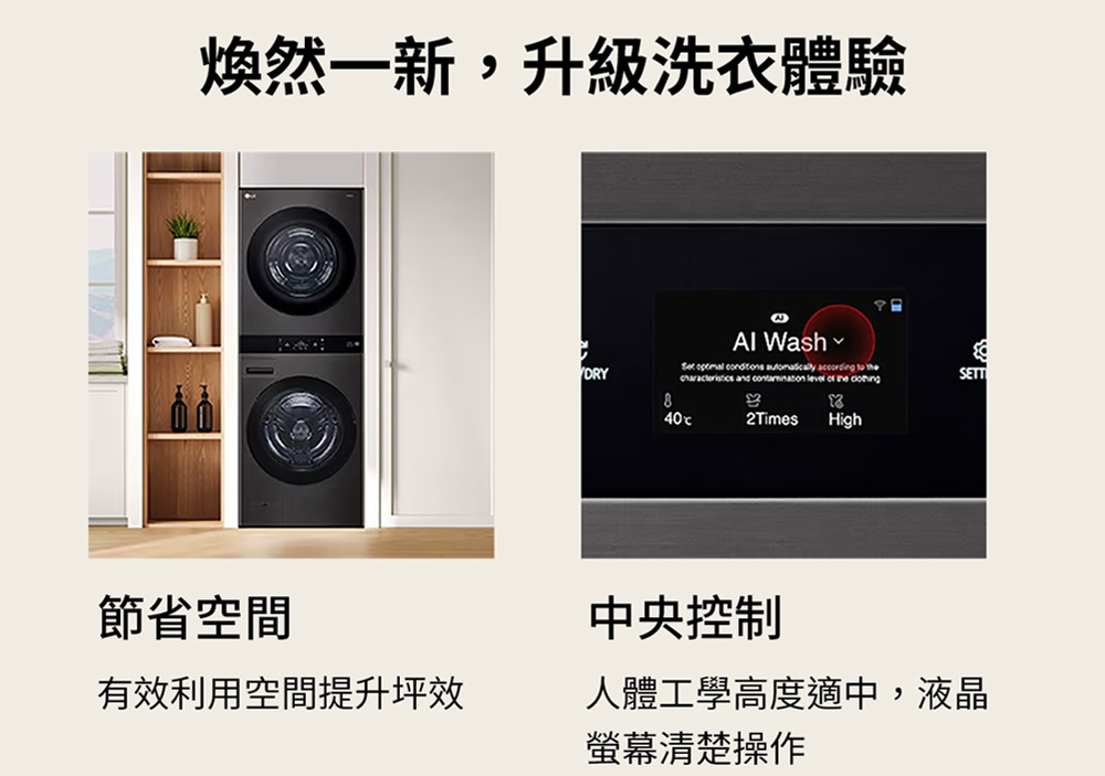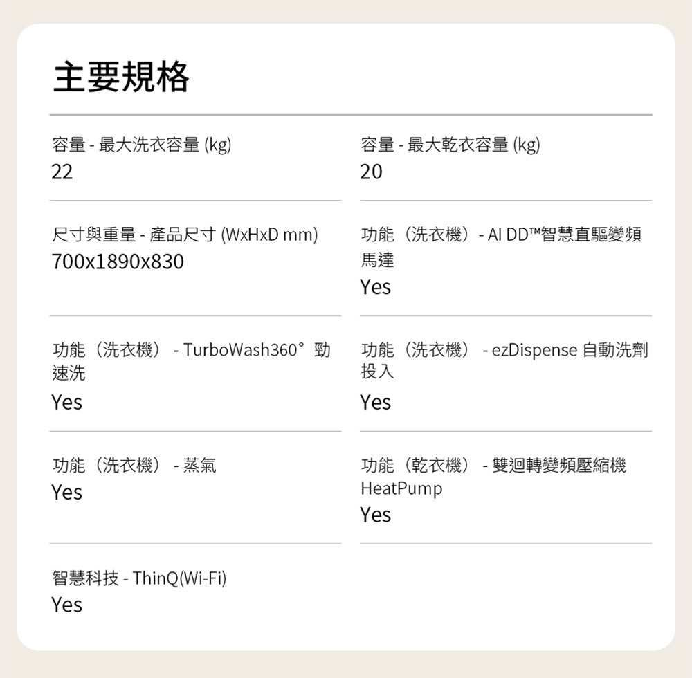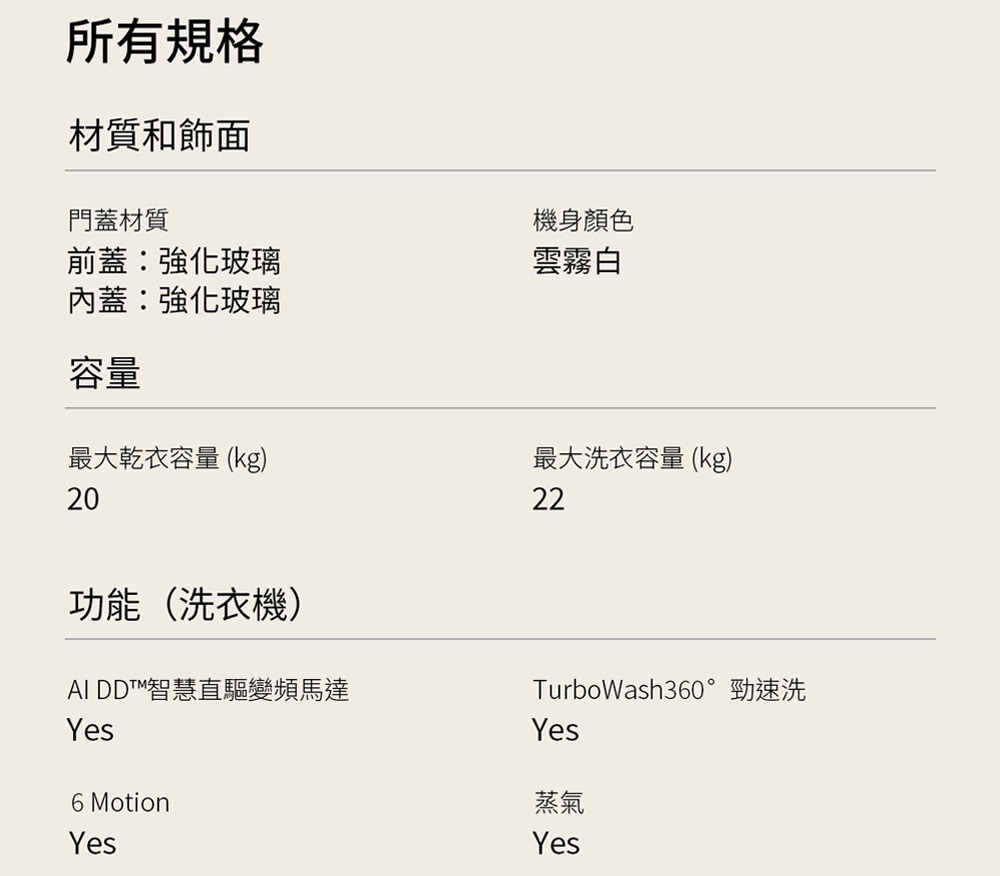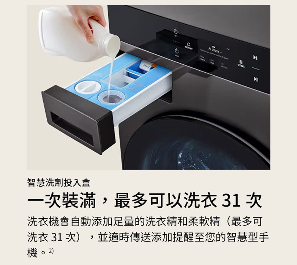 WD-S2220EW 洗22公斤+乾20公斤 WashTower™ AI 智控洗乾衣機第二代|熱泵除濕 一體成型,極簡流線外型設計 洗乾全 AI,AI DD 智慧洗滌+AI Dry 智慧乾衣 HeatPump 雙變頻熱泵除濕式乾衣 全觸控中央控制液晶面板,人體工學高度適中 Smart Pairing 智慧行程配對,預熱乾衣減少等待時間 智慧洗劑投入,自動精準添加剛好的洗劑量 看更多 顏色 規格 蒸洗脫烘 Download File