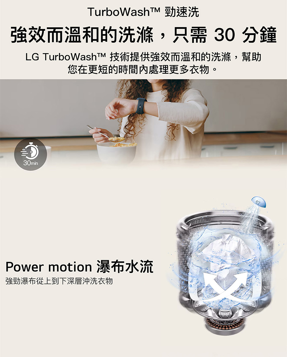 • AI Wash™ 智慧洗滌,提供最適洗衣動作