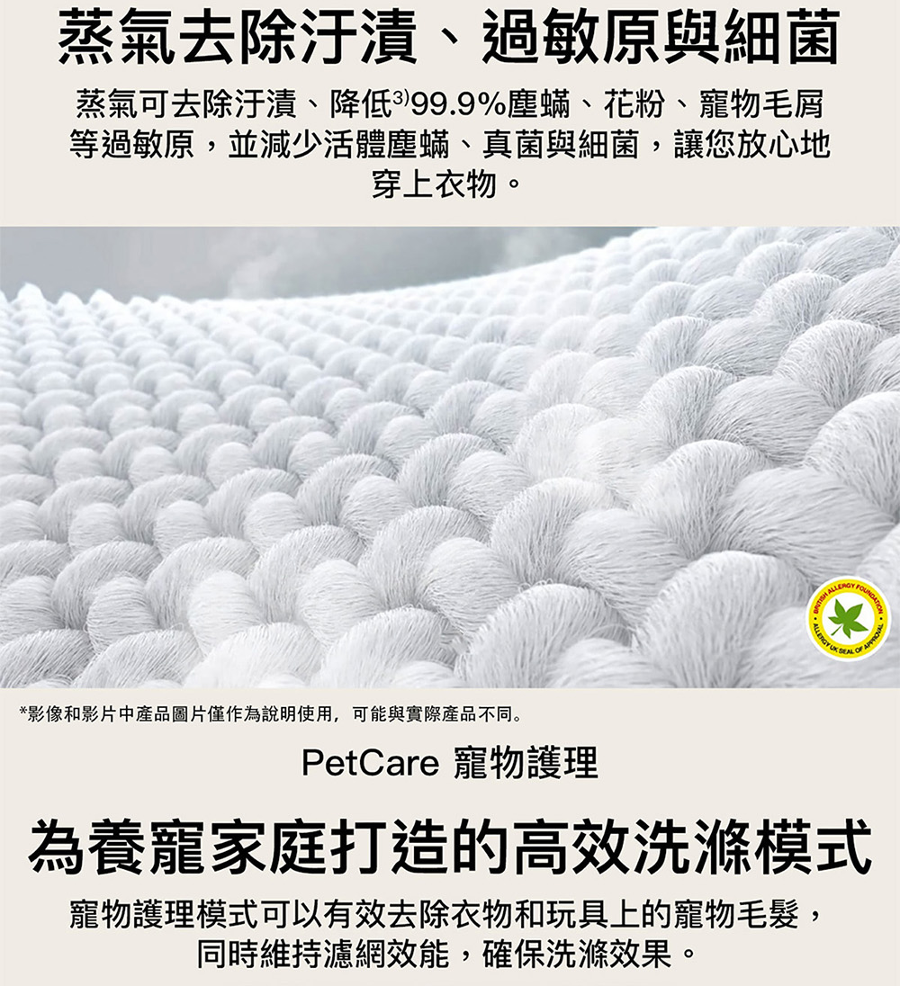 • Steam™ 蒸氣洗,過敏防護行程,有效去除汙漬、過敏原
