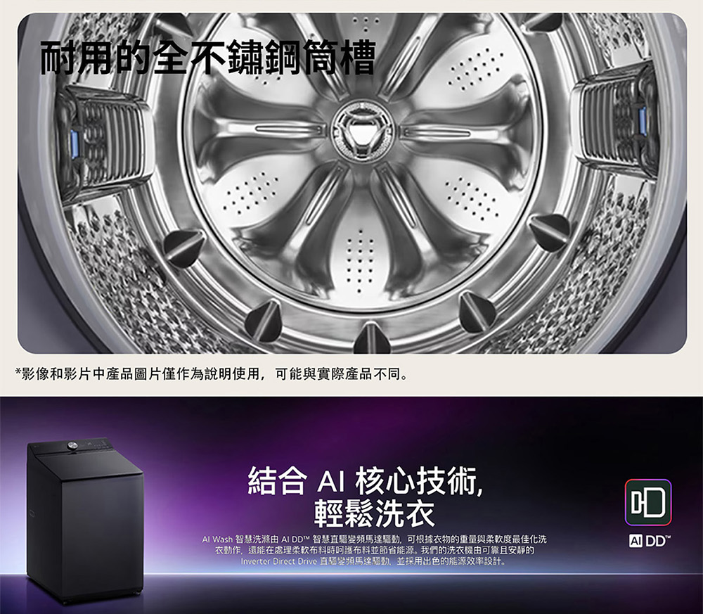 WT-TD20HG 直立式洗衣機 EZ 系列|夜墨灰|AI DD™ 蒸氣直驅變頻 AI Wash™ 智慧洗滌,提供最適洗衣動作 Steam™ 蒸氣洗,過敏防護行程,有效去除汙漬、過敏原 全不鏽鋼筒槽,耐用耐高溫抗鏽蝕 EasyUnload™ 人體工學筒槽設計,舒適好拿取 AI DD™ 直驅變頻,節能耐用,安靜低震動 智慧洗劑投入,自動投入適量洗滌劑和柔軟精 看更多 顏色 規格 WT-TD20HG Download File