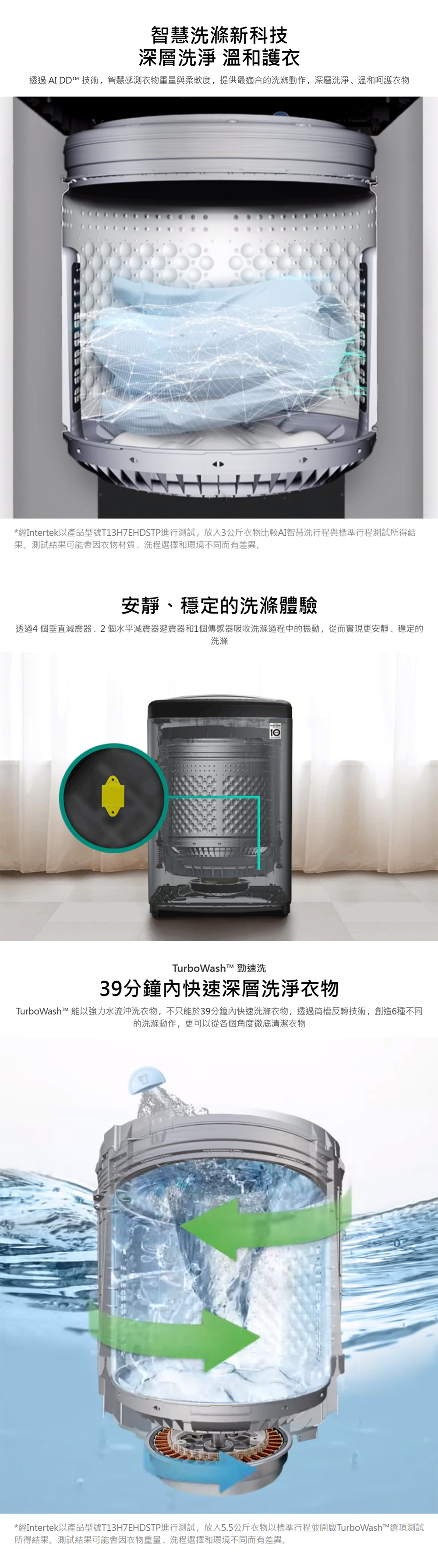 WT-VD18HB AI DD™ 智慧直驅變頻洗衣機|18公斤|(極光黑) AI DD™ 智慧直驅變頻馬達:AI 智慧感測 提供最適洗程 60°C 天然蒸氣 去除 99.9% 過敏原 全不鏽鋼筒槽與濾網:更耐用、髒汙細菌不殘留 TurboWash™ 勁速洗 39 分鐘即可完成洗衣 省時更節能 窄機身大容量 空間規畫更便利 直驅變頻馬達 10 年保固 更安靜、更耐用 看更多 顏色 規格 WT-VD18HB Download File
